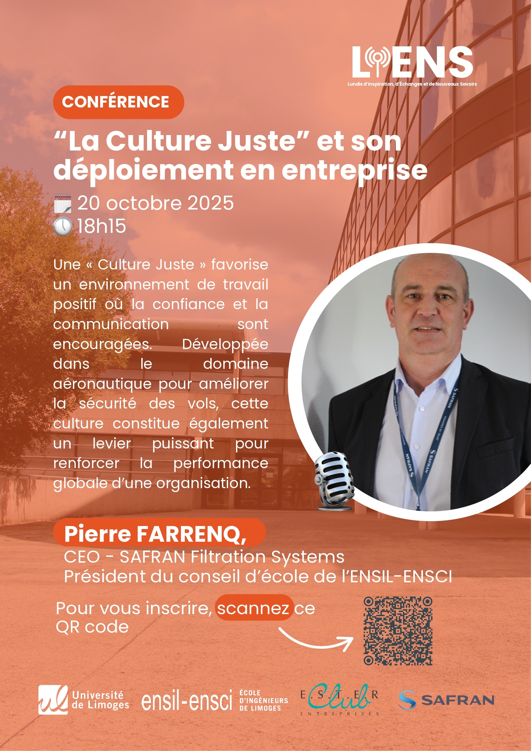 Rendez-vous le lundi 20 octobre à 18h15 pour la conférence : « La Culture juste » et son déploiement en entreprise